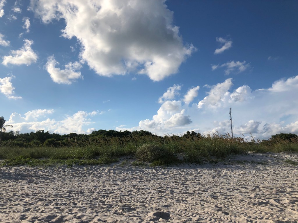 For only $2 a per person, you can enter the park and park your car right next to the beach. Take the winding wooden walkway to reach the soft, white sand. The entire beach’s perimeter is covered by tall, hazy grass, creating a closed in and inviting atmosphere. As you enter the beach’s “bubble”, look to the right; It’s hard to miss the towering lighthouse, surrounded by the tall Savannah grasses and tropical palm trees.